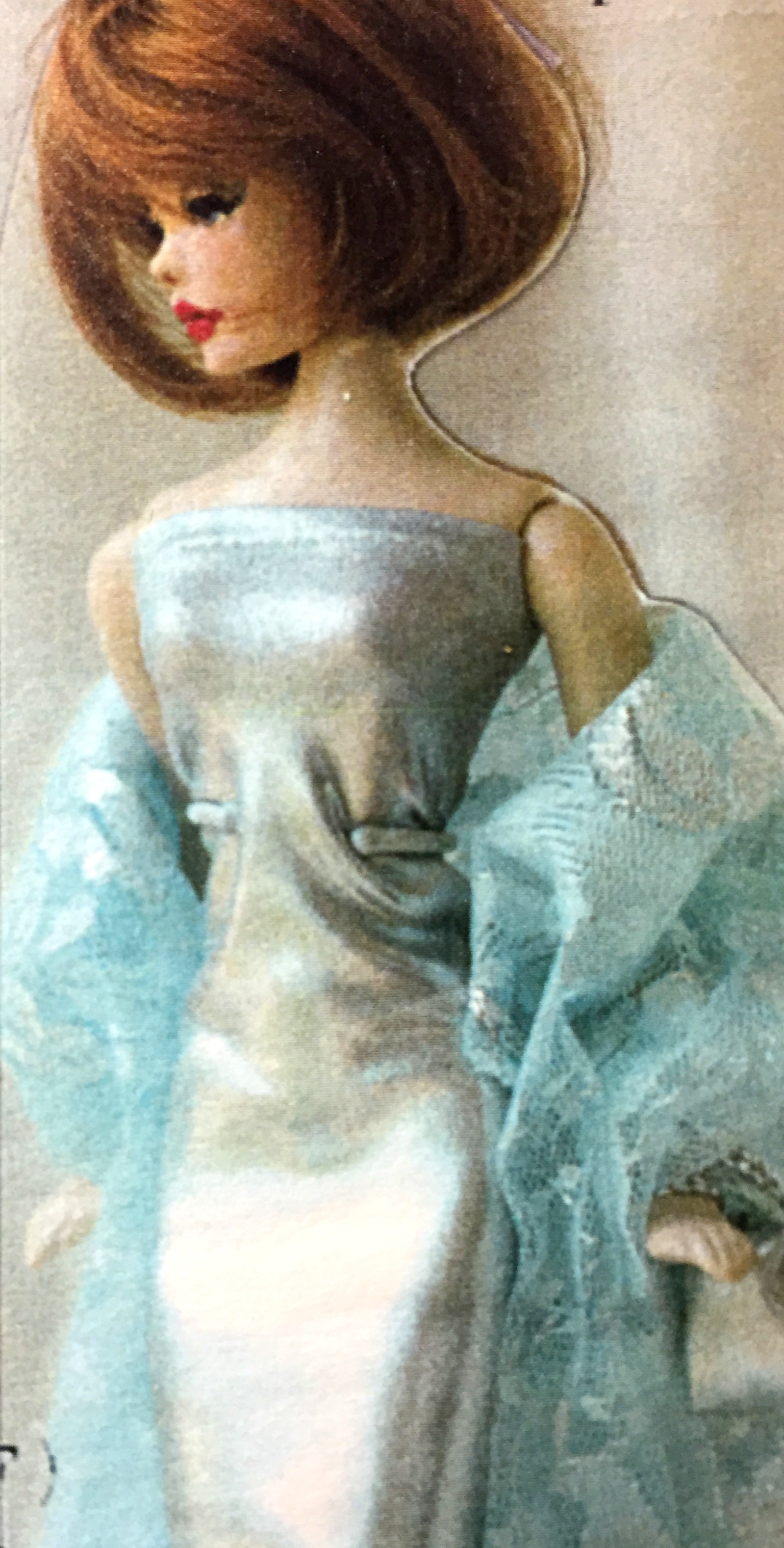 BLUSH, ISRAELI BEAUTY, WITH PALE BLUE EYES & RED HAIR, WEARING HER ORIGINAL, INTRODUCTORY WIG & SHEATH GOWN ENSEMBLE