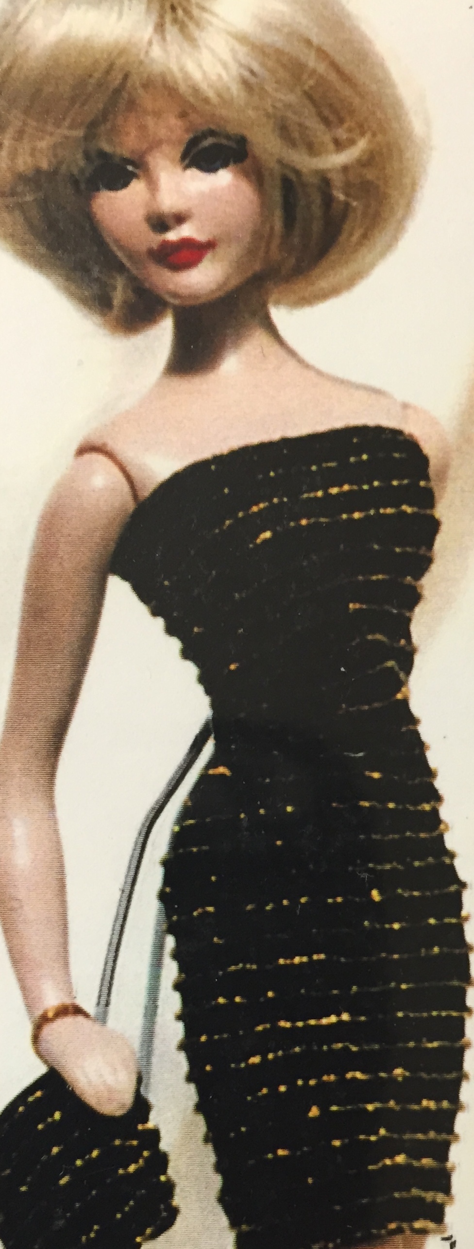 CAELI , WEARING HER ORIGINAL, INTRODUCTORY WIG, A LACE COLLECTION,STRAPLESS ONE PIECE ENSEMBLE & LOVE-KNOT HEELS