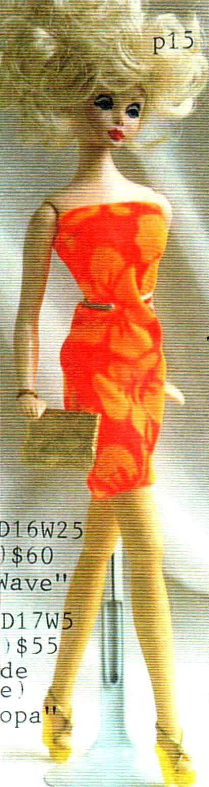 KIKU WEARING HER ORIGINAL, INTRODUCTORY WIG IN PHOTOS  AT TOP, AN ALTERNATE WIG STYLE WITH BANGS IN PHOTO BELOW & LACE COLLECTION, PRINTED MINI SHEATH ENSEMBLES &  LACE COLLECTION STOCKINGS & LOVE-KNOT HEELS