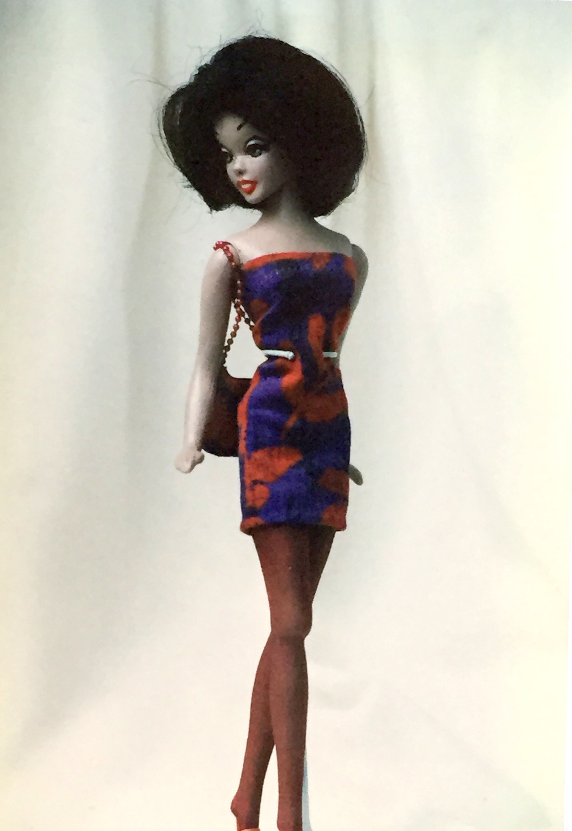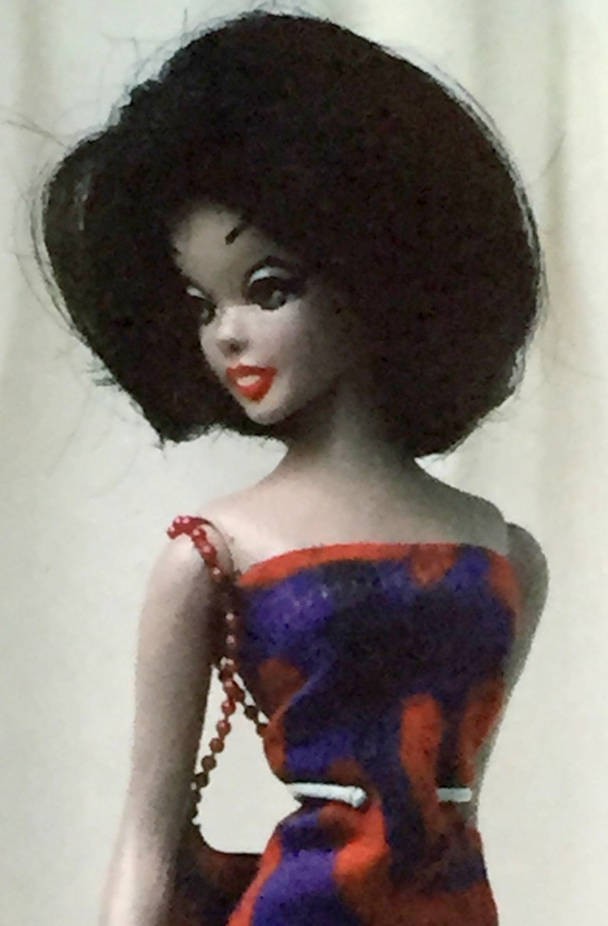 MAGNOLIA, MYSTIQUE’S COUSIN, WITH SILVER-BLUE EYES, MEDIUM COMPLECTION, DARK HAIR & OPEN SMILING RED LIPS, WEARING HER ORIGINAL, INTRODUCTORY WIG & A LACE COLLECTION, PRINTED, MINI, SHEATH ENSEMBLE
